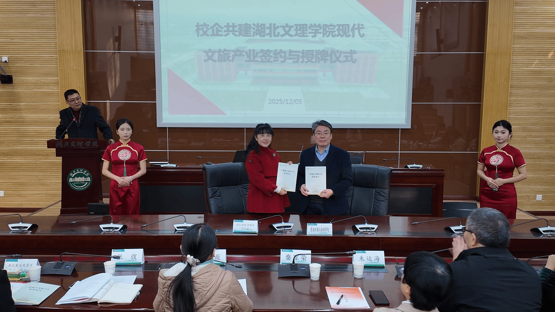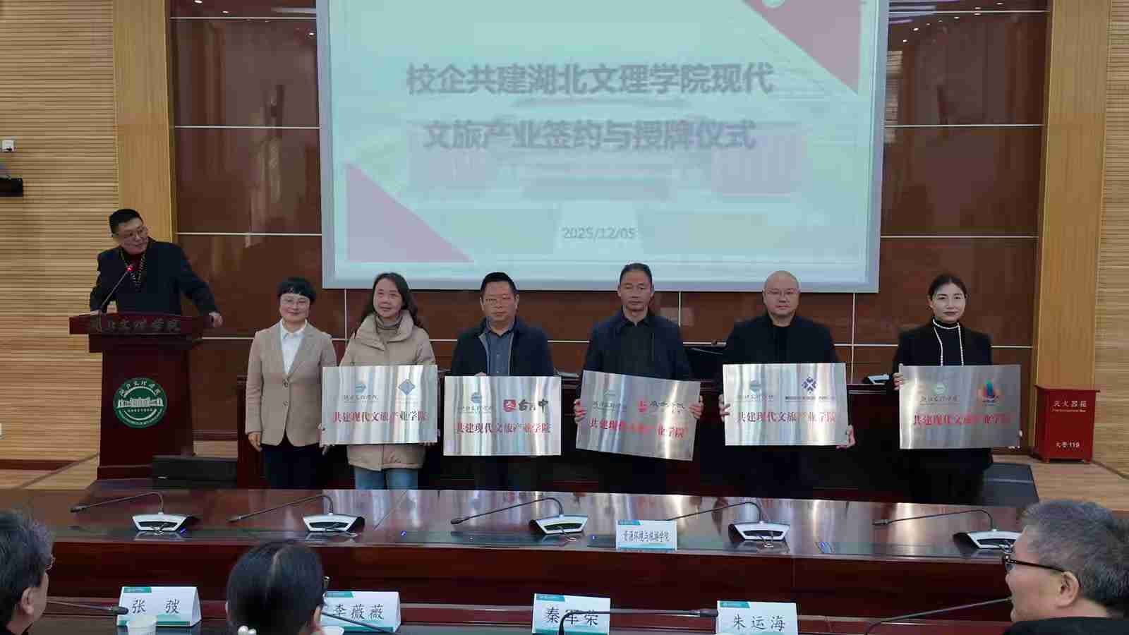 (通讯员 龙雨萍)2025年12月5日,资环学院携手16家文旅企业及相关单位,在学校图书馆一楼报告厅隆重举行现代文旅产业学院共建签约与授牌仪式。湖北文理学院副校长秦军荣、资环学院院长张弢、副院长龙雨萍,以及特邀嘉宾、部分师生代表共同见证了这一重要时刻。