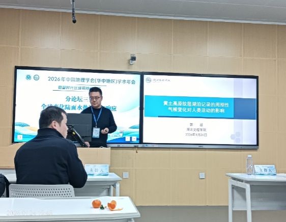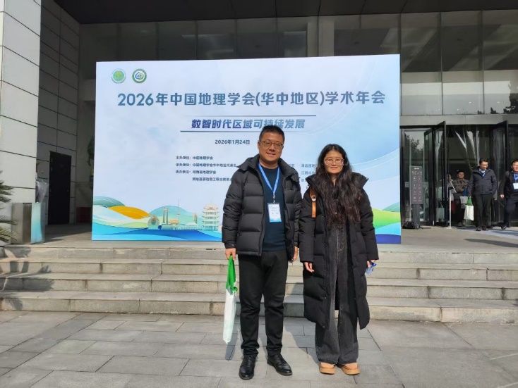 (资环学院 通讯员 郭超)2026年1月24日,中国地理学会(华中地区)学术年会在武汉大学召开,会议主题为“数智时代区域可持续发展”。本次年会由中国地理学会主办,武汉大学资源与环境科学学院等单位承办,设置了1场主旨报告和21个平行分论坛,内容涵盖流域人地系统、生态环境遥感、智慧城市、地理教育等多个前沿方向。湖北文理学院资源环境与旅游学院老师郭超和姚瑞以及研究生吴楠应邀参会,郭超教授与姚瑞副教授在分论坛作学术报告,师生一同交流学习,收获颇丰。