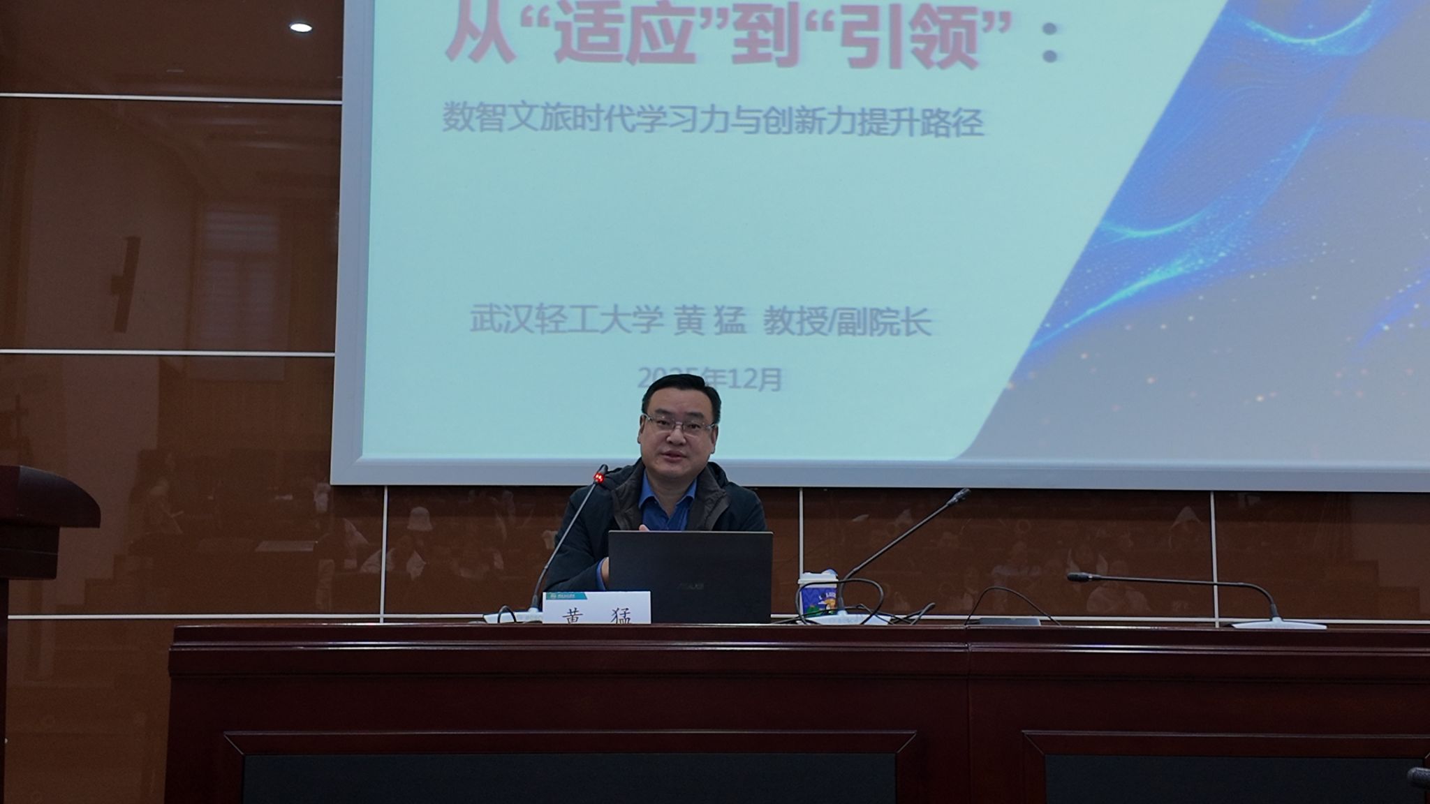 (通讯员:李萍)2025年12月5日上午,湖北文理学院旅游管理硕士(MTA)教育中心“文旅问道讲堂”学术报告会在图书馆一楼报告厅顺利举行。本次报告会特邀武汉轻工大学黄猛教授与武汉商学院旅游管理学院副教授、湖北省旅游学会秘书长刘军博士担任主讲嘉宾,围绕数智文旅时代的能力提升与湖北旅游产业空间发展两大主题展开深入分享。本次讲座由旅游管理硕士(MTA)教育中心主任朱运海教授主持,资源环境与旅游学院师生及相关领域学者参与了本次活动。